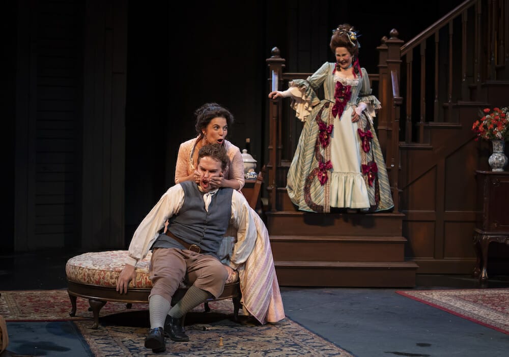 Phoebe González as Constance is running all over the place trying to make sure she’s not married off to Tony. Pair her with Josh Krause as Tony Lumpkin and they’ve got us in tears as as they bicker and fight like brother and sister.