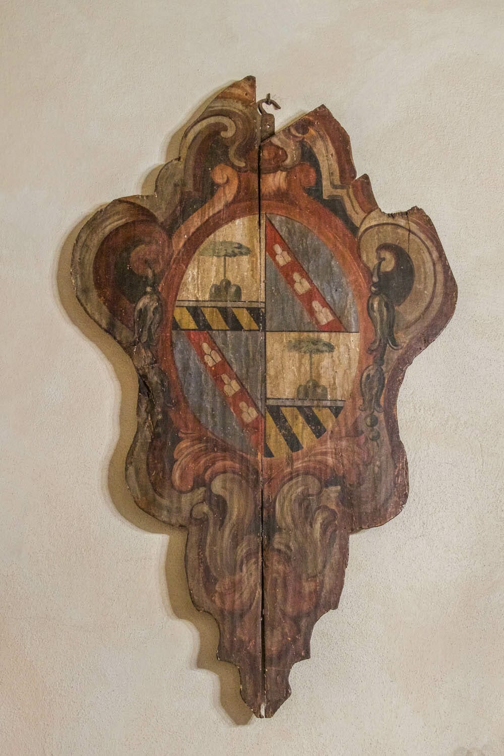 Giving visitors a sense of history was front of mind for Giovanna when she was on the fun hunt for décor to complement the many furnishings she inherited from her Siennese parents when they passed. The coat of arms prominently displayed on the wall will likely grab your attention. Giovanna explains that its symbolism captures the history of two families joined into a clan—Colonia della Corga. The corga is referencing the name of a tree ,and the column being the same main family that ran the palace (castle-fortress) that is at the center of Castiglione del Lago.