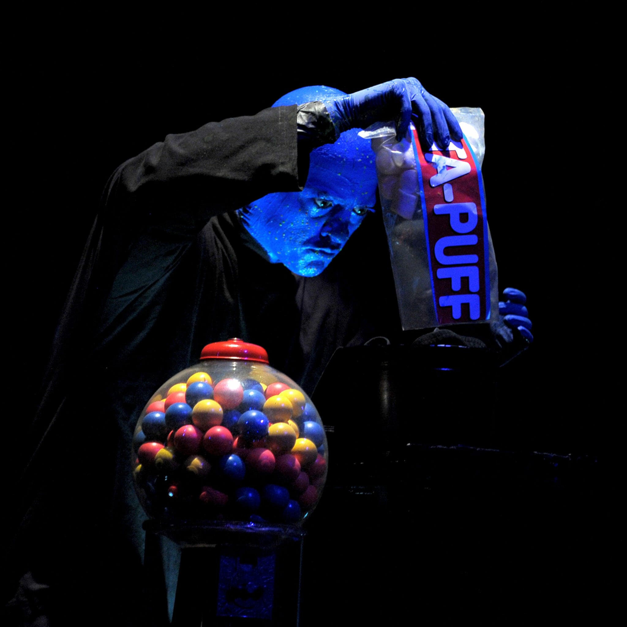 On stage with the blue men