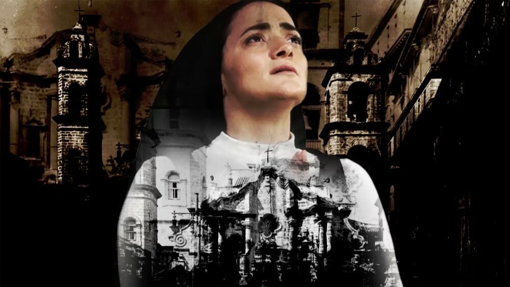 As the unwavering Angelo finds himself quite…taken with the novice nun Isabel played by Cruz Gonzalez-Cadel, he covers his crotch with his hat as he prays to the heavens above asking what has overcome him.