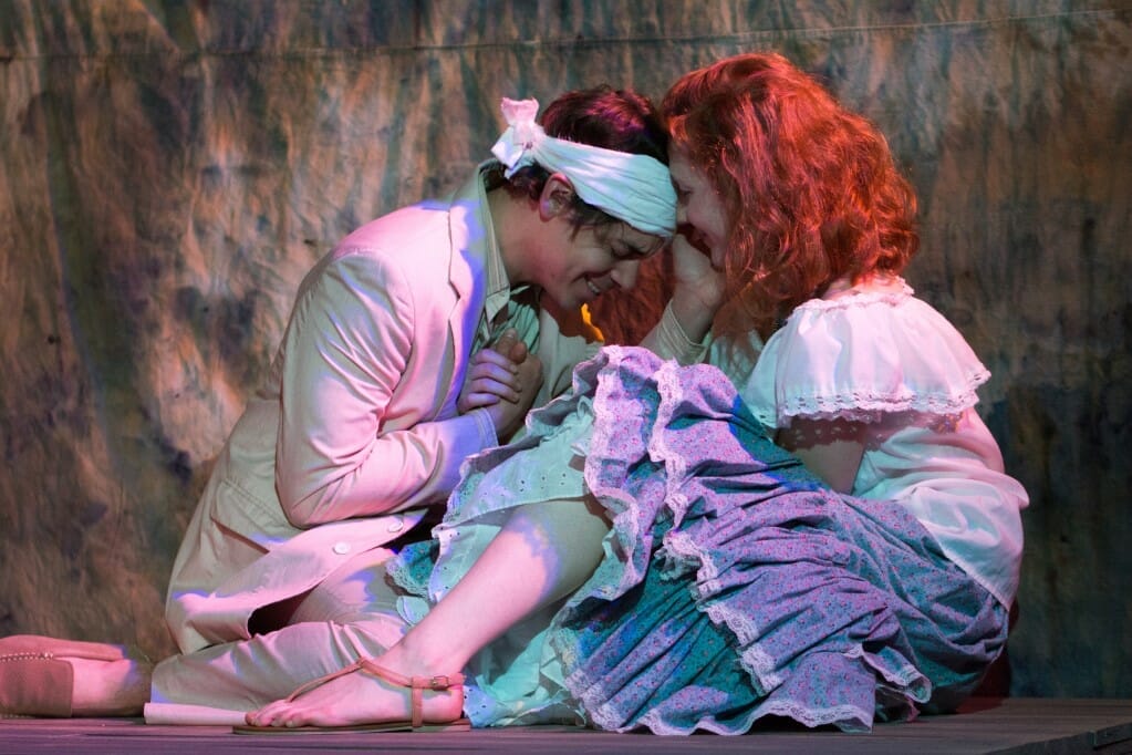 For an audience member at a play, immersion in someone else’s life on the other side of the equator is an artistic marvel. Through light, music, dialogue, set, video and props one can experience a village on the Amazon River in Brazil…of course, in our Midwest section of the globe, outside temperature and its obvious results in a third-floor church “attic theatre” seems to reach tropical rainforest proportions and aid the “suspension of disbelief.”
