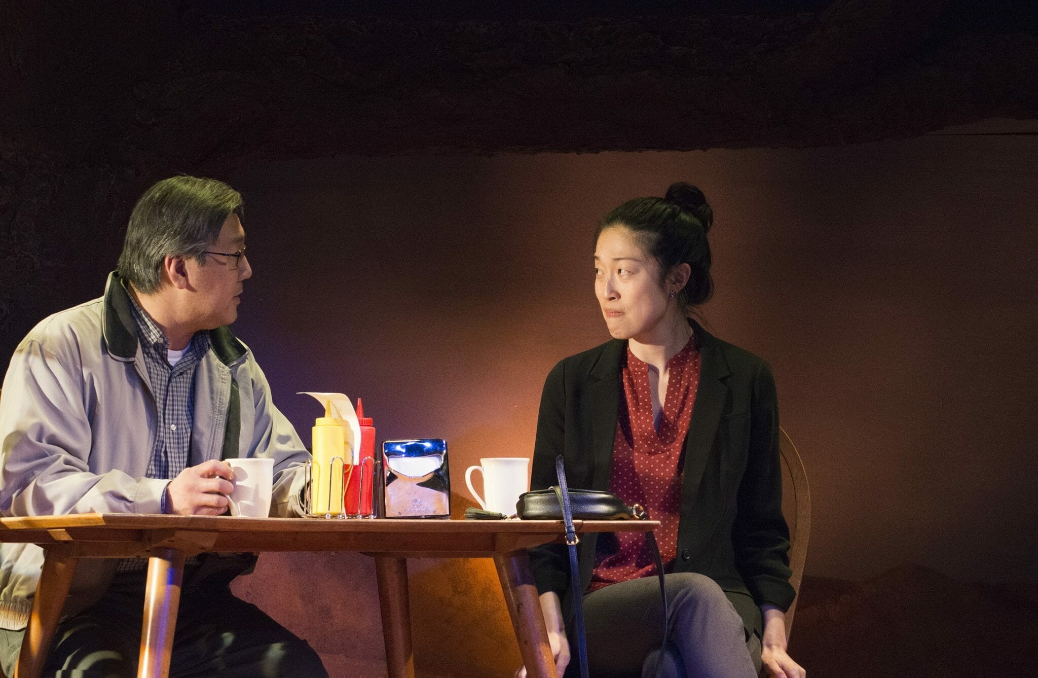In fact, taking in this play with a Korean-American friend whose father disappeared and then reappeared around the time of his Hwangap, just like the characters in this story, she wonders if the liberties with Korean-American culture went a step too far. It’s not a common Korean tale, actually, these Hwangap-driven reunions with Dads that had gone missing. Would Korean born immigrants like the mother and father in this family’s story say things like Korean culture is “f**ed up” or such a father refer to his daughter as a “tightass”? Hmm…