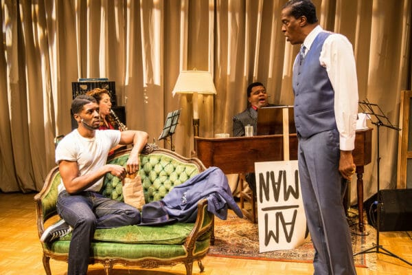Stew’s musical is by no means told in a linear, traditional fashion, creating a puzzle for the audience that this writer found exciting to watch unfold. Director Lili-Anne Brown masterfully crafts the pacing of the piece, allowing just enough time for the audience to catch up before the next twist or turn arrives. At the heart of it is a story of a father and son relationship set within the context of the Civil Rights Movement. Marty’s father, Joe Roy (Robert Cornelius with impeccable comedic timing, as well as emotional depth) is a Gospel Star, and Marty writes much of his music – that is, until Joe and Marty realize their political differences may cause too many challenges to overcome.
