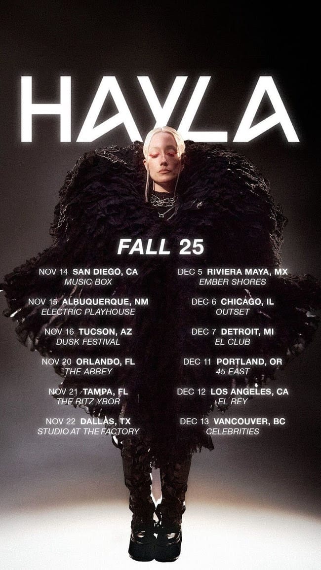“...In addition to “FADED,” live audiences can expect to hear a range of HAYLA’schart-topping collaborations and stand-out solo hits as well as new material to be released in 2026. From her recent track with GRAMMY-nominated producer and songwriter ILLENIUM on “In My Arms,” to lending her powerhouse vocals to John Summit’s chart-topping hits including the Gold certified “Where You Are” and “Shiver,” as well as deadmau5 and Kaskade’s GRAMMY-nominated Kx5 smash “Escape,” her KYGO collab “Without You,” and partnership with Meduza on the #1 dance music radio single “Another World,”..."