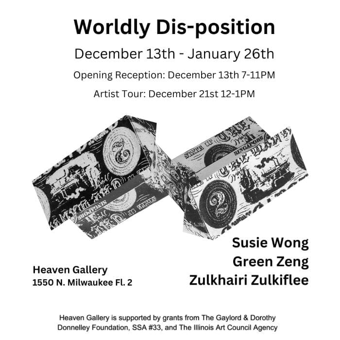 “...Artists: Susie Wong, Green Zeng, Zulkhairi Zulkiflee The group exhibition presents the lens-based artwork of Susie Wong, Green Zeng and Zulkhairi Zulkiflee. It contemplates the postcolonial term ‘worlding’ coined by theorist Gayatri Spivak to describe how the colonial gaze shapes representation. In particular, this entails a process where knowledge and reality are entangled within colonial structures. Here, the title ‘worldly dis-position’ alludes to a sense of ‘deferral’ that is enacted through the prefix ‘dis’ or understood as ‘apart’..."