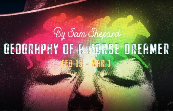 “...Cody (Joe Cullen - Otto in Design for Living), a Wyoming cowboy, has the lucrative gift of dreaming the winners of horse races. When Fingers (Diane Slamp - Herodias in Salome) and her gang of mobsters discover Cody, the somnolence psychic, they kidnap him and shackle him in a ramshackled motel room (location unknown). Here, in these smashed-up quarters, Cody is shackled to a bed, where he dreams winner after winner, making the mobsters millions until Cody becomes dream-locked in a fog for weeks, useless at his abilities to pick the right horse. What will the consequences be? Shepard's folly, poetry and dark humor in Geography of a Horse Dreamer (1974) seems to be a riff off his rock-music battle for stardom in his renowned work A Tooth of Crime (1972), where Shepard fuses rock and roll, drugs and crime to populate a world of a fireball-music gang leader Hoss who is crazed about fame. These fantasy universes are overflowing with the passion and angst for art, love for the American West and Shepard's disillusionment with the American Dream..."