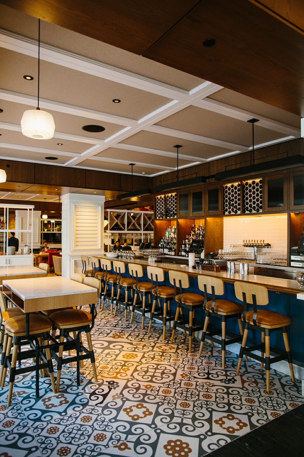 Tre Rivali is open for breakfast, brunch, lunch and dinner. With a décor of clean and bright white tiles, and a kitchen visible through a large plate glass window, the environment is perfect for any time of day. There’s even a special counter for quick orders of coffee and baked goods. Its bar is open from 5 pm to midnight daily, but late-night drinkers will likely prefer to head up to the ninth-floor rooftop bar called The Outsider. It includes indoor and outdoor seating. The outdoor seating warmed by fire pits as well as a plastic enclosure that allows the deck to be used all year. Reports are, though, that the Outsider’s deck is one of Milwaukee’s most popular drinking spots during the warmer months.