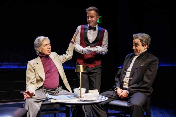 WAIT, WAIT, WAIT— did I say “men’? With masterstroke casting, Leonard Bernstein is played by Helen Schneider, and Von Karajen is played by Lucca Züchner. Both are relatively diminutive in stature but MORE THAN CONVINCING as the male characters they play. For this reviewer, the gender of these actors was forgotten more than remembered as they animated their performances with inflections and body language that so aptly create the characters of Last Call.