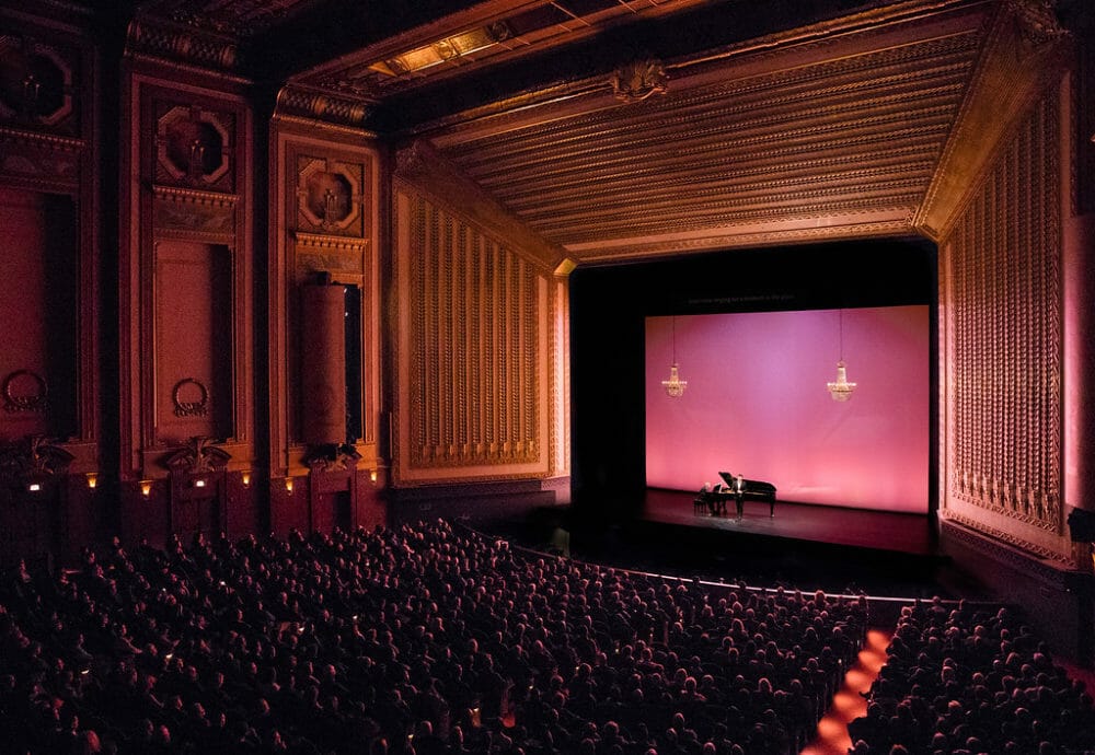 Most of the selections are focused on exile, fond remembrance, and hope for reunification. But that is not the only timely theme, and the show opens with Solomon Howard’s rendition of Lift Every Voice and Sing. For this reviewer, his bass resonance would be nothing short of sublime even without the bittersweet backdrop of the Lyric’s warmly lit but empty house. Musical director Doug Peck accompanies Howard, as well as the subset of soloists who filmed in Chicago on the piano. We see what appears to be a private chamber performance. Yet we are in the cavernous Lyric space, which provides a subtle current to buoy each voice’s unique character. Howard returns later in the show to perform Man of La Mancha’s The Impossible Dream, transformed into both a civil rights anthem and an artist’s determination to soldier on even in the current theatrical landscape of pandemic times.For fellow fans of musical theatre, one of the big draws of this performance is the presence of Heather Headley. The originator of the role of Nala on Broadway in The Lion King, her reprise of the anthem Shadowland is haunting and defiant. If the show had streamed a week earlier, the song’s description of her country as a blasted, smoke-enshrouded landscape might not have seemed so literal, but with wildfires raging on our West Coast at the time of the first broadcast of this show, it resonated even more. She also leaves us with the notes of Finian’s Rainbow, as well as The Wiz, reduced to their hopeful essence by only a single instrument, the piano, accompanying them instead of a whole orchestra.