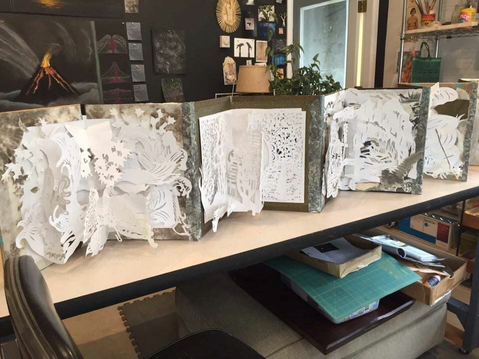With her Texan accent and hair that changes from Atomic Aqua to Forest Green to Vampire Red, artist Sally Blakemore hardly seems like a practitioner of Chinese paper cutting and engineering. But she is. In her Arty Projects Studio in Santa Fe, New Mexico, she transforms delicate sheaves into art pieces.