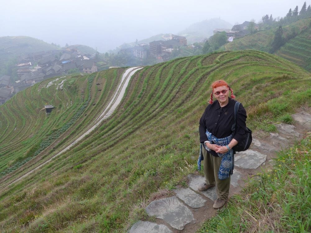 Blakemore made her first trip to China in 1988 and now, many years and trips later, she self-identifies as Chinese. Her current flaming hair color acknowledges that, according to her Chinese astrology, red will bring her luck.