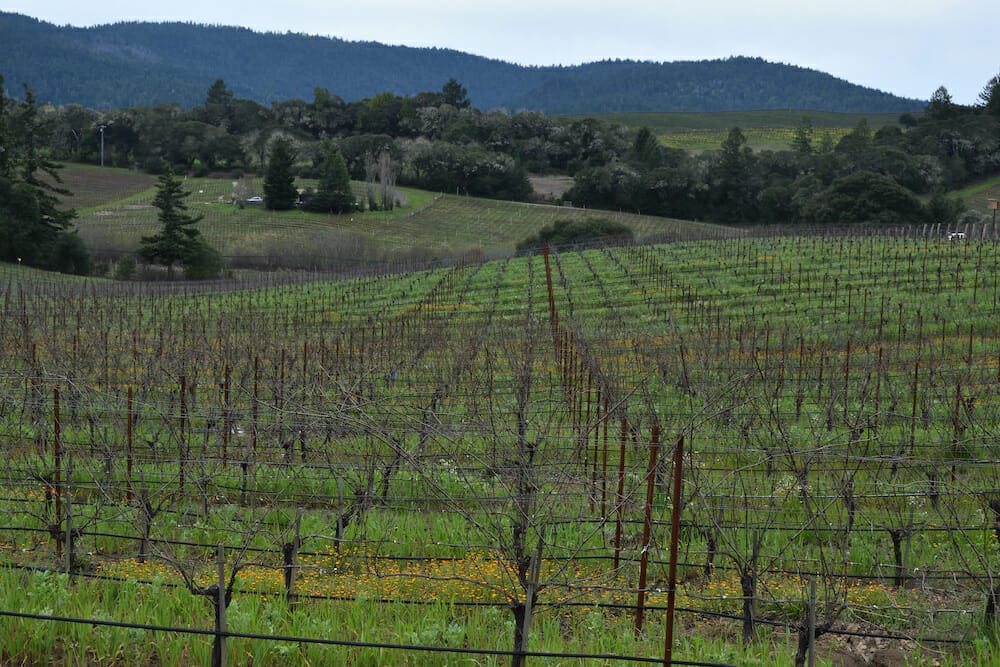 Once you finish the menu, you can contemplate these distinctions up close with a short walk through their pinot noir vineyards — to the left of the tasting room, there’s a low-incline dirt path that takes you up past the duck pond and left through rows of trellised vines. We visited during the grapes’ dormant season, so there was no visible growth, but this writer found that the light walk and sweeping view of the valley (on this visit, layered with fog and speckled with wildflowers) was a very pleasant way to round out our tasting experience.