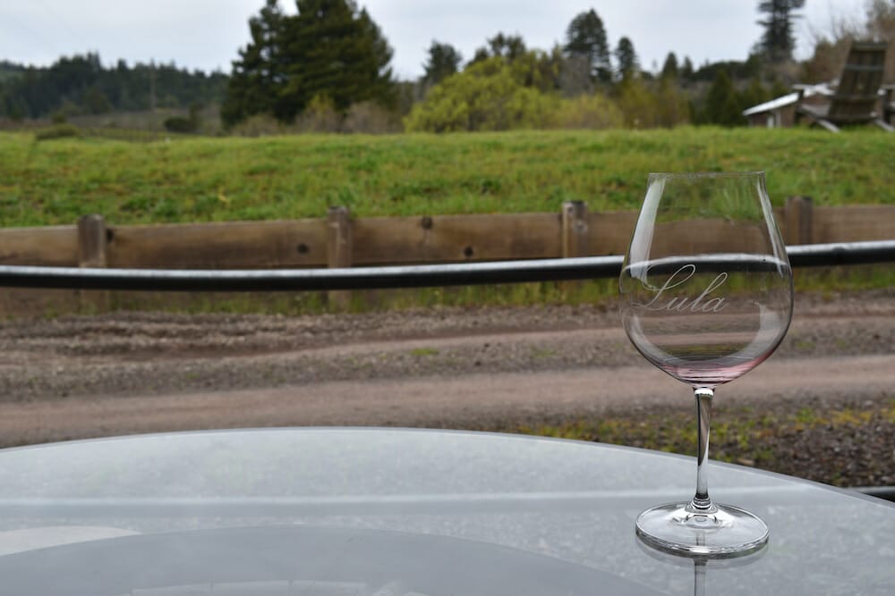 As you slowly resume tasting, Lula’s hospitality manager, Kim, comes over and informs you there is no pressure to finish each pour — may he demonstrate a disposal technique? He takes your glass and, with a dramatic flourish, sends the remains in a sparkling red arc over the gray sky and green fields beyond. Surprised laughter ensues, and Kim replaces your glass on the table — would you like a refill?