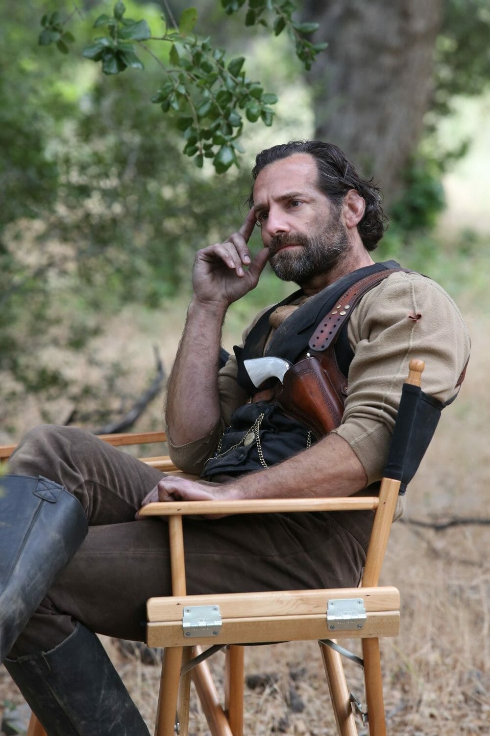“Well...alrighty, detective,” says the dapper-looking man in the waistcoat and pocket chain. The camera cuts to several extras––unnamed men who play gunslingers, unnamed women who play sex workers––who rubberneck the impending fight from the shaded cover of the nearby storefront bars. The man in the waistcoat narrows his eyes further. “What do you say we give these folks a good old-fashioned dime-novel showdown?”