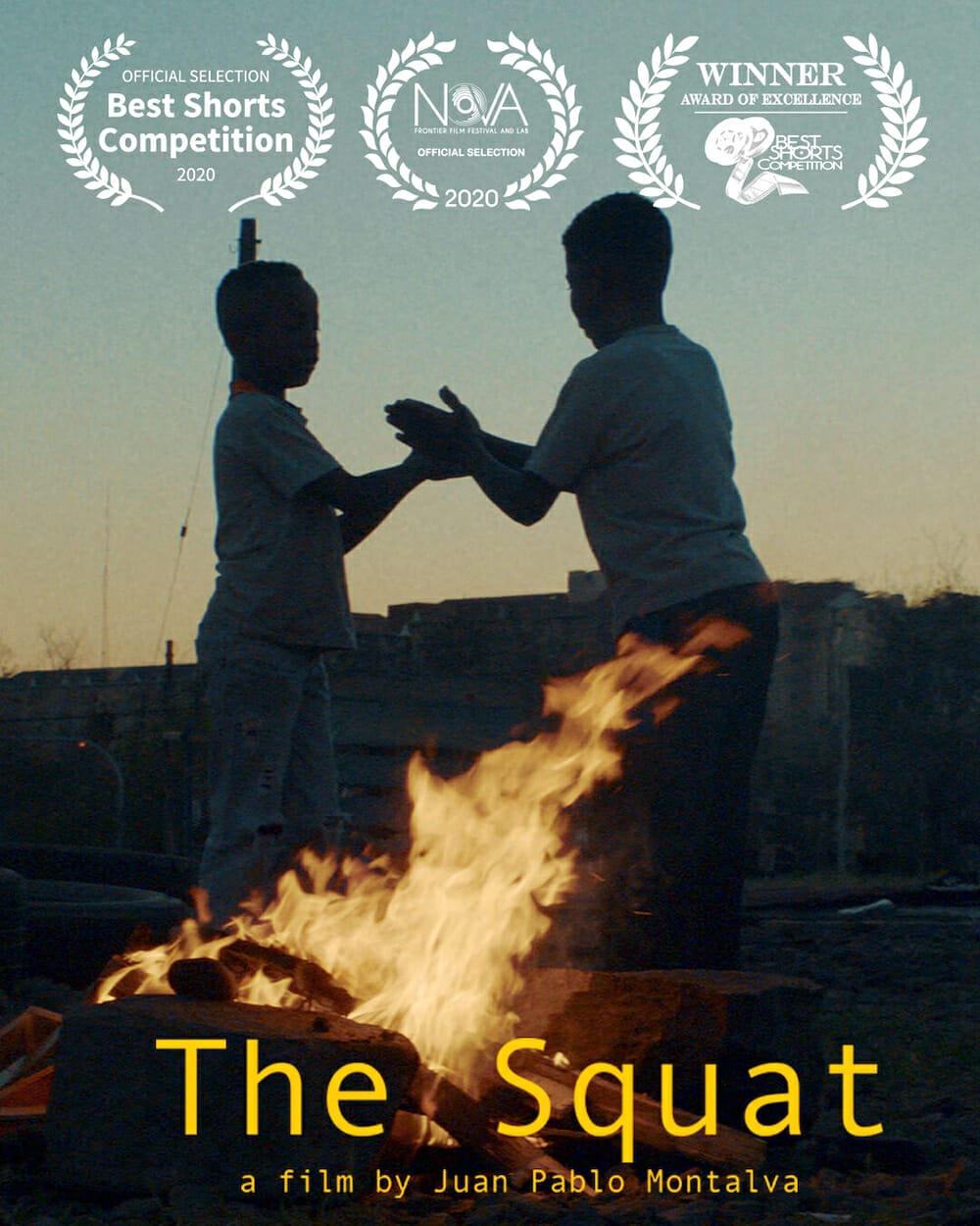 As filmmaker Juan Pablo Montalva’s camera circles above and around the homes, it is clear that the Squat is a neighborhood built from plywood and plastic at an abandoned railroad station less than 20 feet above a Chilean highway. Colombian flags hang from doors and windows. Wooden crates painted blue have been made into benches. Placed all in a circle, our attention is brought to this space that is likely frequently full of residents socializing.