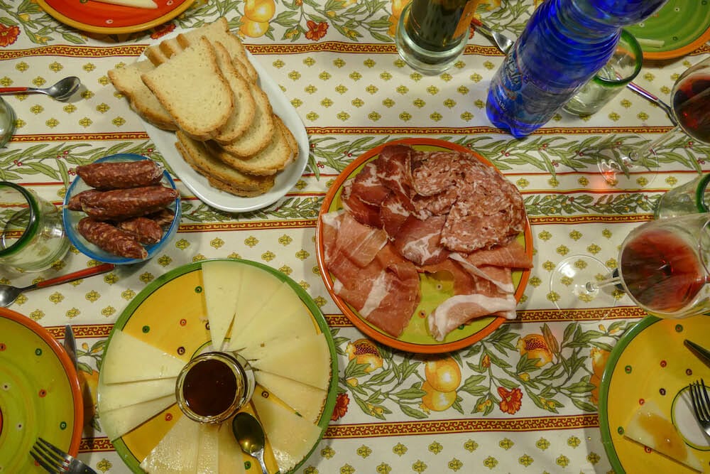 The first of many chances to break bread with Divertimento hosts Chiara of Podere Molinaccio B&B and Raffa of Poggio del Pero agriturismo, we sat at Chiara’s large kitchen table in the shadow of her BMW espresso machine, so super-sized that could rightfully also serve a busy town bar. The table was already set with a sumptuous assortment of antipasta. Raffa, who, unlike Chiara, loves to cook, was busy making the noodles al dente perfect.