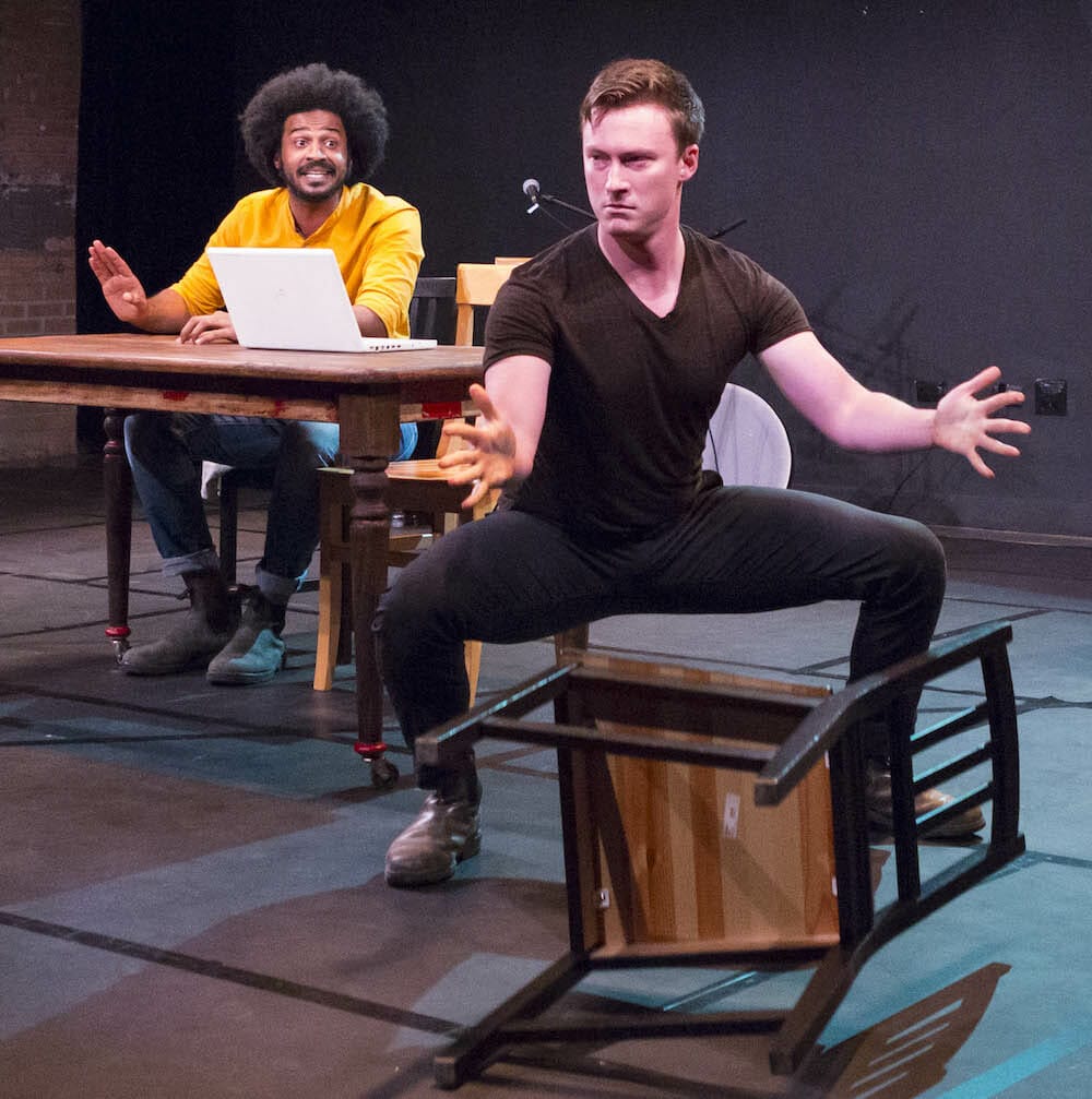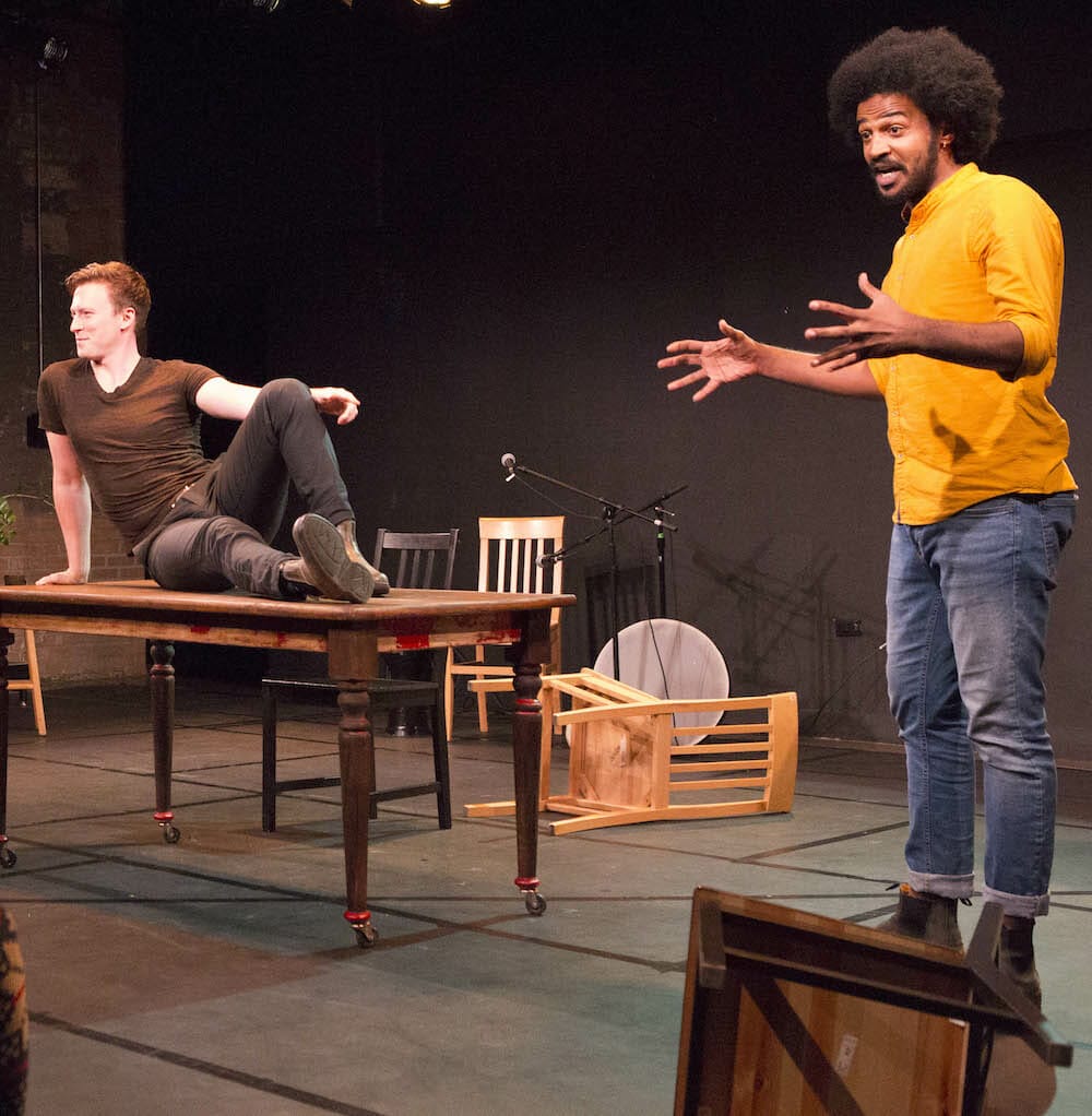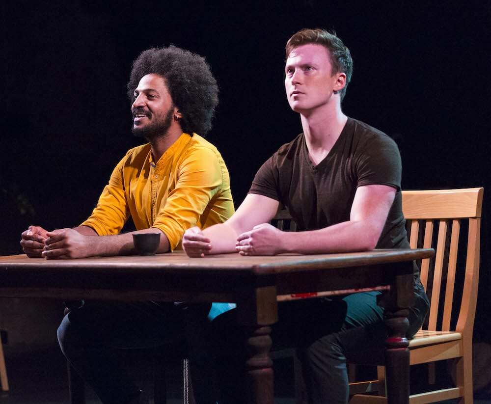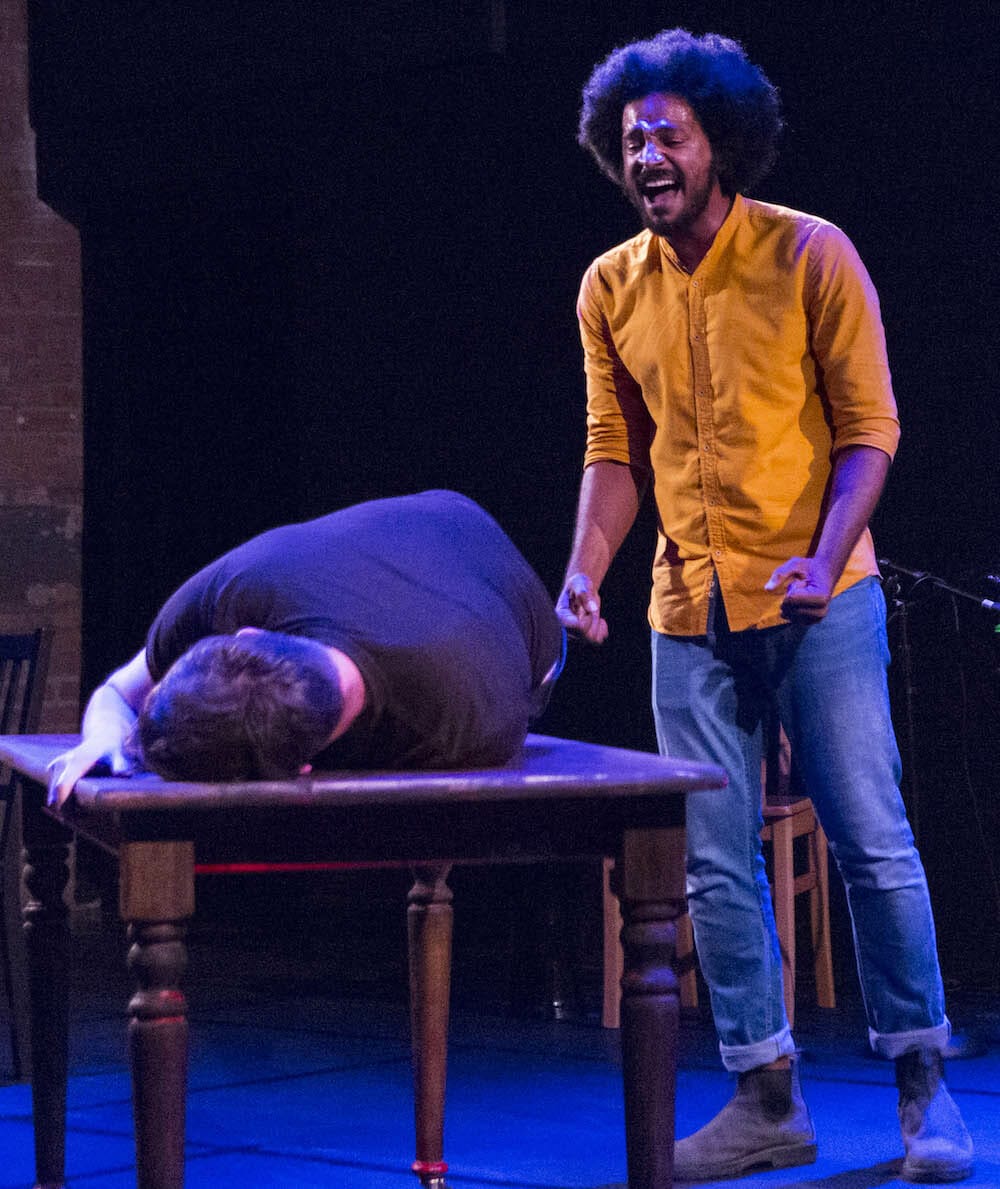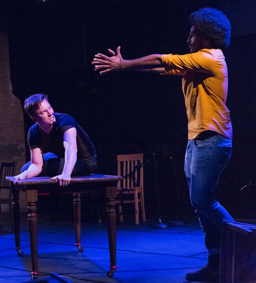 You too may want to do a quick dive into Wikipedia for Cliff Notes on the Epic of Gilgamesh before you see this joint effort by playwright Seth Bockley and his two musician/actor collaborators, Jesse LaVercombe and Ahmed Moneka. Truth to tell, you don’t need to. What is happening when is entirely clear, even with the actors often flipping timelines and characters within a sentence. Rather than confuse, this rapid back and forth keeps you engaged. More, if you don’t know a tad about the Epic of Gilgamesh poem, it quickly will be recognizable as an archetypical hero story. Billed as the oldest known literary work, it made this writer want to google the datestamp on Homer’s Odyssey, which somehow seems like a story line that could have been conjured by the very same hero-obsessed male author. At least that’s what one imagines Jung, Freud and Campbell might think too.