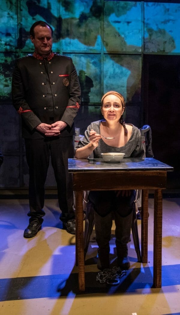 Right from the gitgo we certainly know that something gotta give. We also know it is a story of rebellion catching on, as soon as Elyse makes her entry, oozing an inner strength that eludes her foe, The General. How she comes to engage her cellmates in a run for the barricades, to save what’s left of humanity, is the plot driver. It’s a ride that anyone concerned about where we are headed today will likely admire. For this writer, the play is akin to a moving update on ee cumming’s poem, I Sing of Olaf. Meghan Brown’s script keeps us riveted to see how it all goes down. You will find NO SPOILERS HERE, except to hint that perhaps Lev Parnus’ clarification that Trump’s world is more cult than mafia, qualifies him to be an advance man for this show.