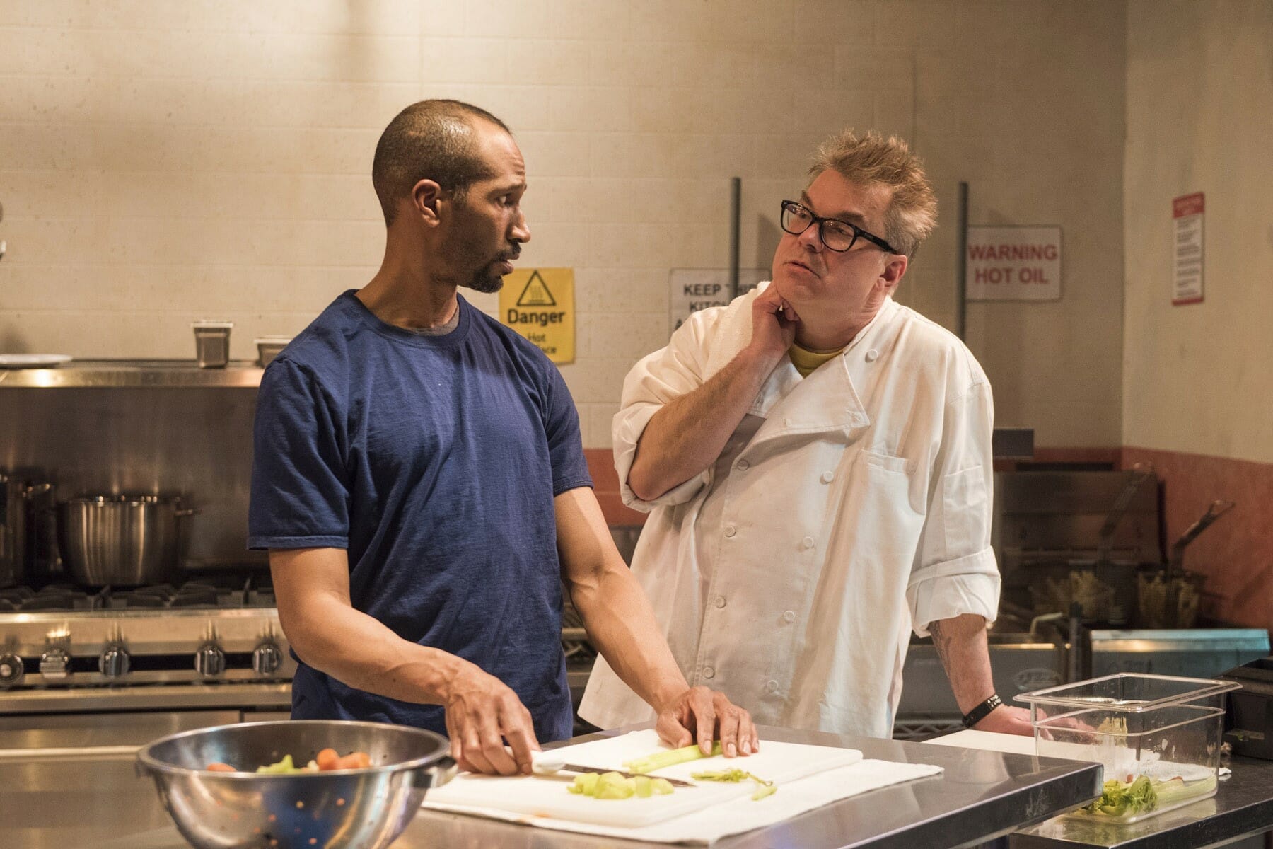 Everything seems to be fine until George bonds with Steve (played with subtle reserve by Anthony Irons), a seemingly West-African dishwasher with a kindred dark past. They make a bargain, anger management lessons for cooking lessons. These stories are real and complex, but covered with a veil of superficiality that only an hourly shift job can provide, something anyone with a first job in service can relate to.