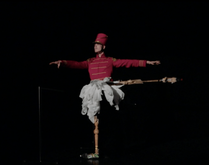 How perfect that the title character is half-puppet and sporting a tutu that might also land him a part in Tchaikovsky’s Swan Lake. One minute he’s en pointe puppet style to Tchaikovsky’s score. Then he breaks into a mic’d hip-hop love song lament, with a refrain “Don’t go coming for my nuts.” What a hoot!