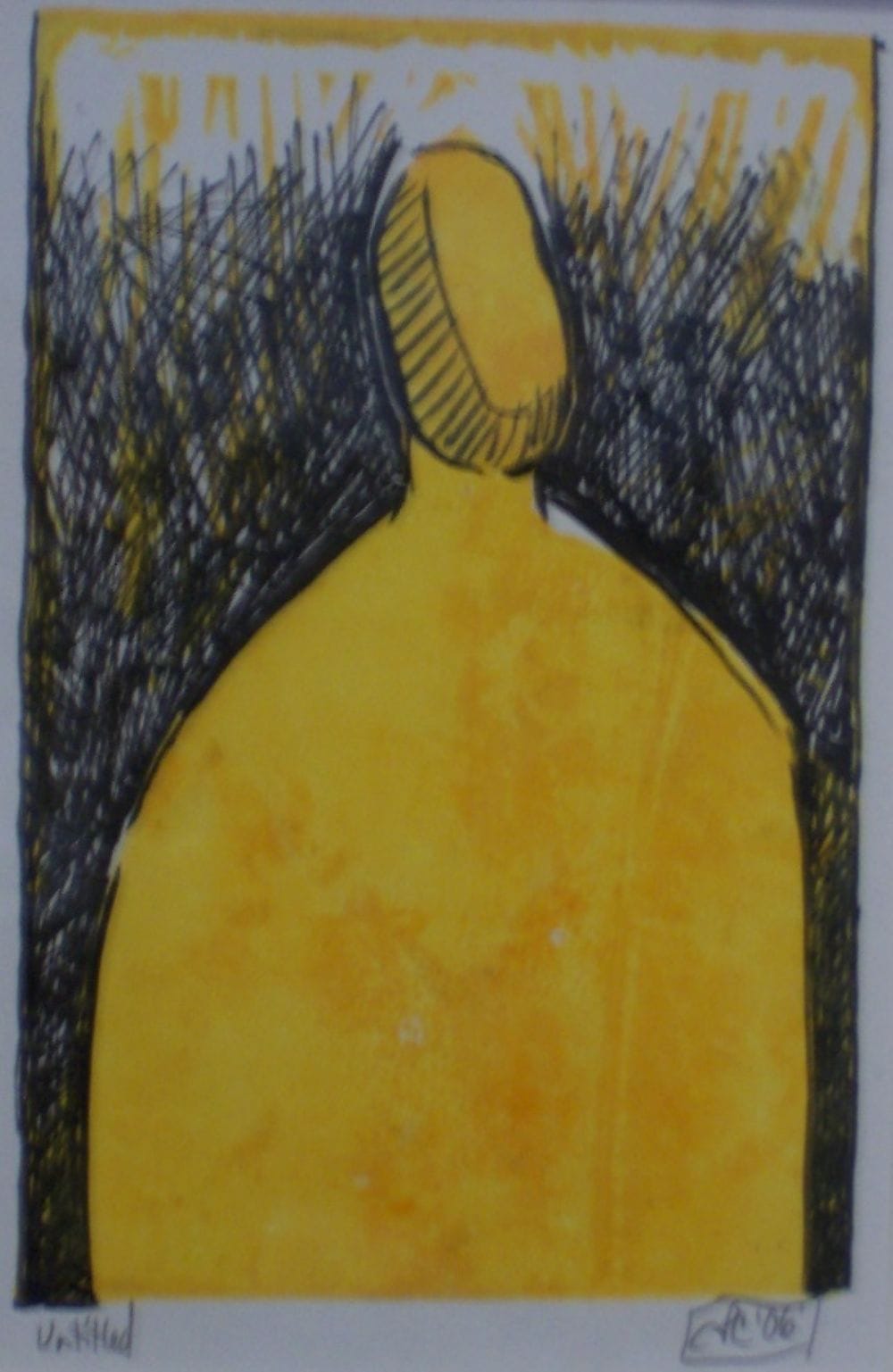 I am very interested in mixed media. The 10 Commandments series is made of monoprints and mixed media. I made ink monoprints that I cut out into human figures and attached them to paper. The lined/ruled paper came from my experiences from elementary school where if we got into trouble in school, our teachers would make us write lines 50-100 times. If you talked too much in class, you would have to write, I will not talk in class. And so on. When interacting/thinking through the comments I read and hear from white people about their thoughts about Black culture and Black response to discrimination or police brutality, I felt like the line motif would be an impactful aspect to incorporate into my art.