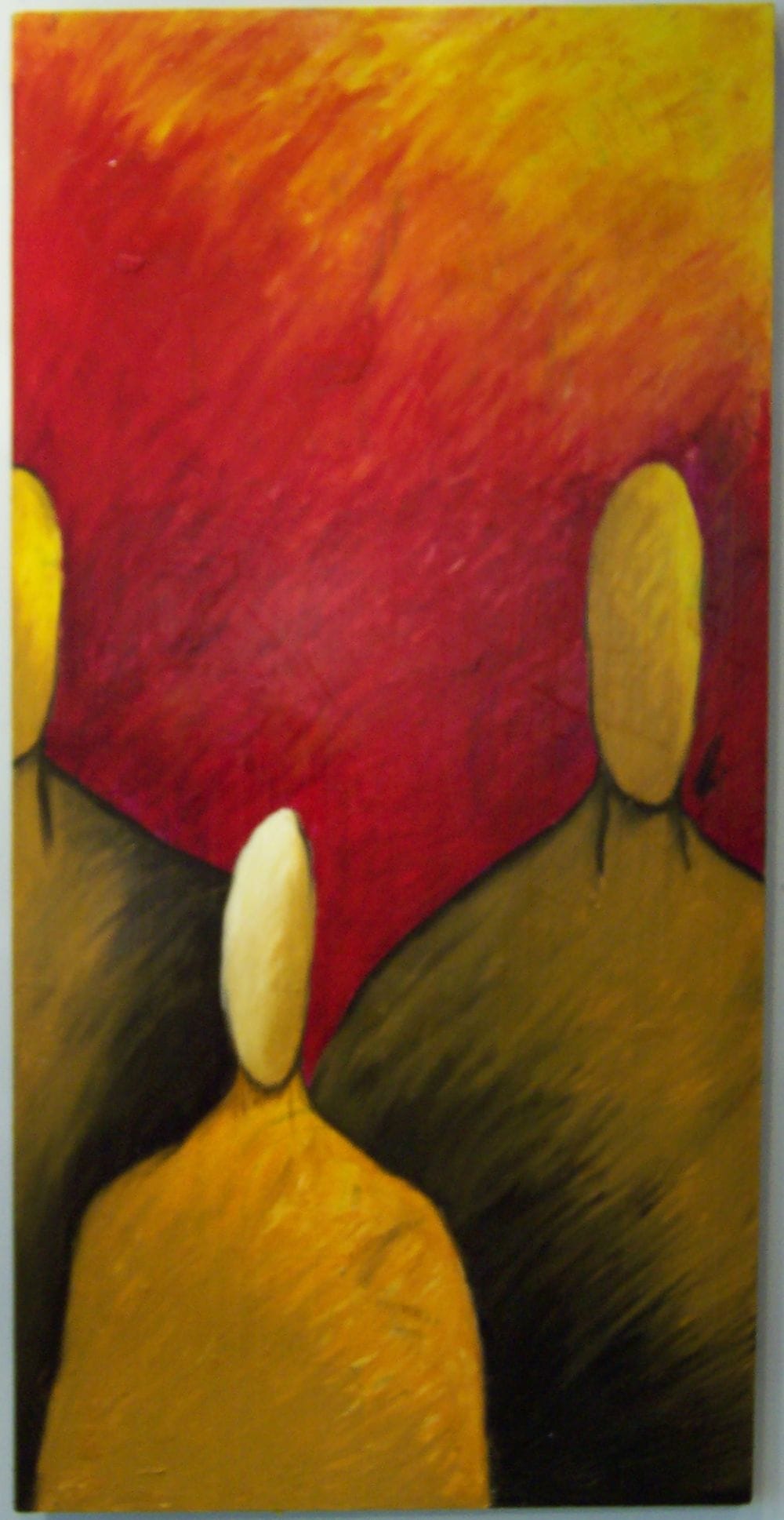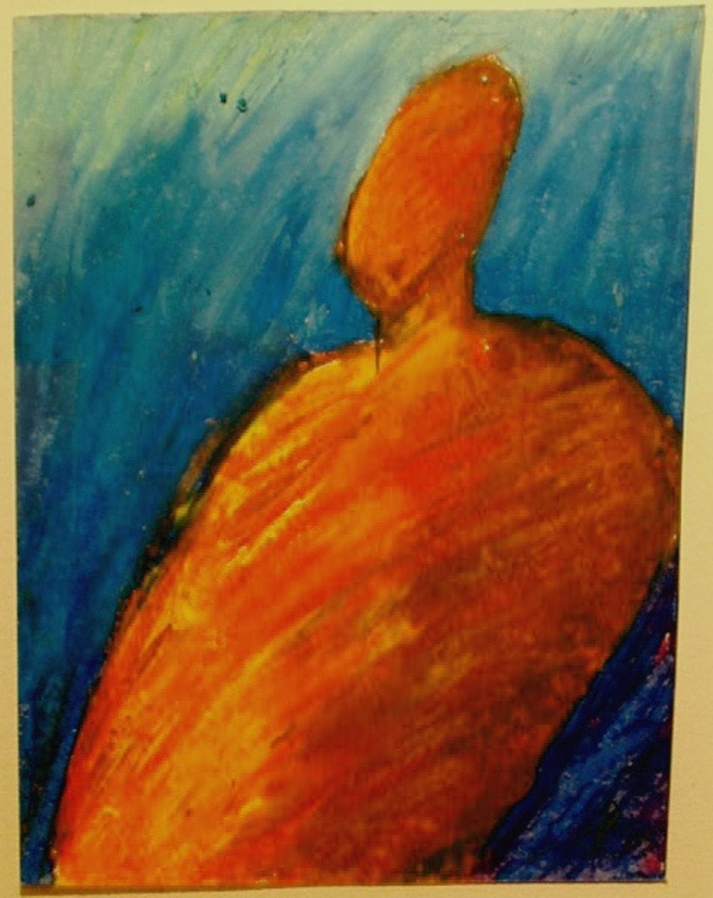 I primarily work in oil pastel and oil sticks. I was introduced to them while in high school. Oil pastel was much cheaper than traditional paints, so I could afford to buy them as a broke college student. They also allowed me to work through an idea more quickly than traditional paints because they did not need the longer timeframes to dry. I could create an entire image in a day instead of a week to allow for paint to dry.