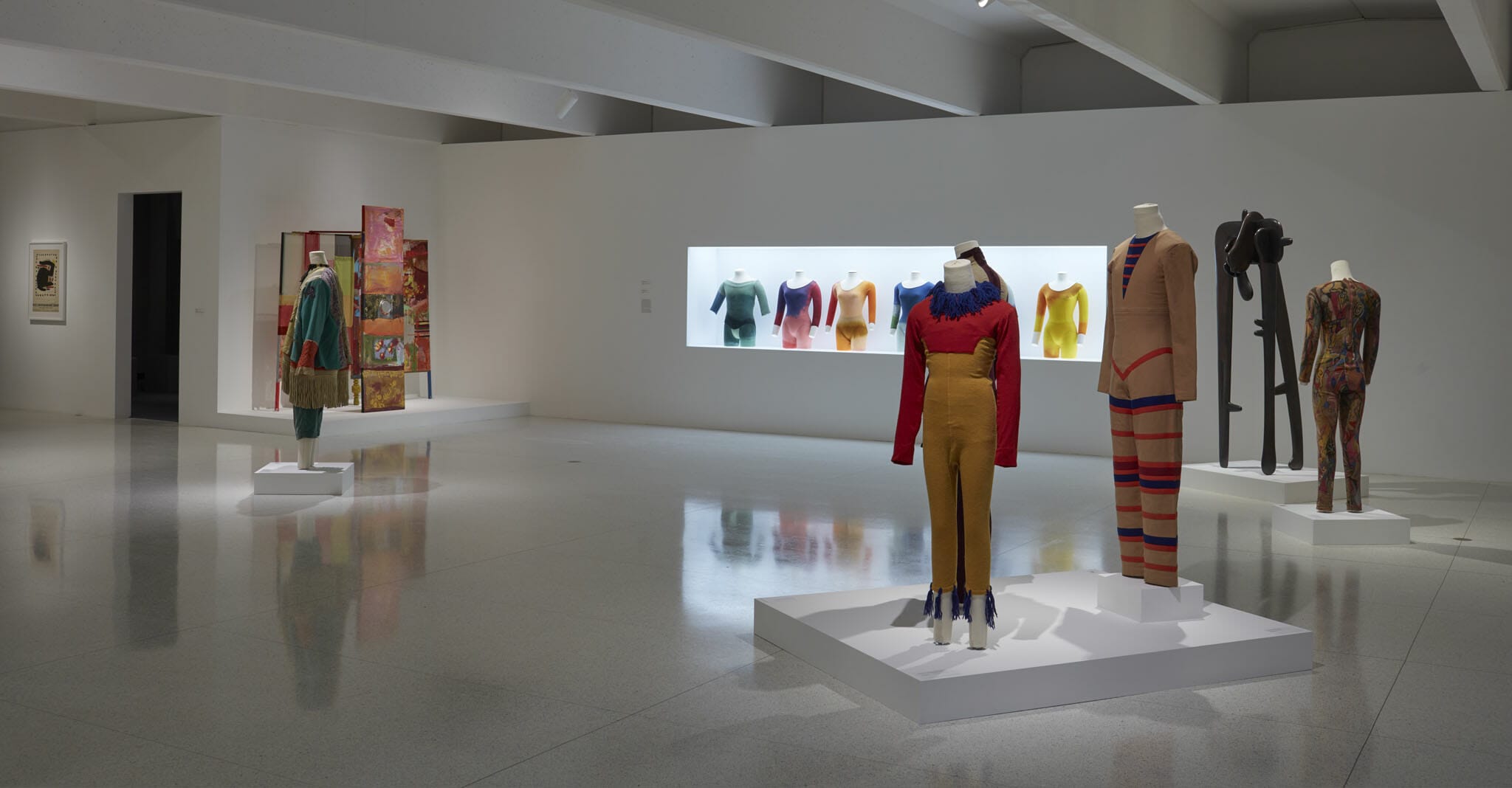 In the first gallery, a set of costumes and some stage props from past performances of the dance company greet us. We are drawn in by several colorful pieces.