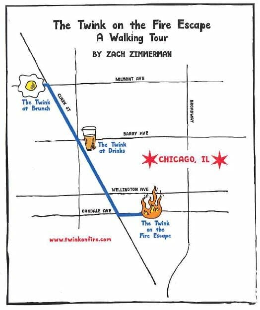 Anyone who has lived in Chicago for a number of years can walk its streets and point out places that hold certain memories for them. It might be the restaurant you had your first date with your partner, the comedy club where your roommate worked, or the corner you were standing on when the Cubs won the World Series. For Zach Zimmerman, there are three particular locations in Boystown that hold his very specific dating memories. With him as our guide, we embark on a walking tour as he tells us his story --THE TWINK ON THE FIRE ESCAPE.